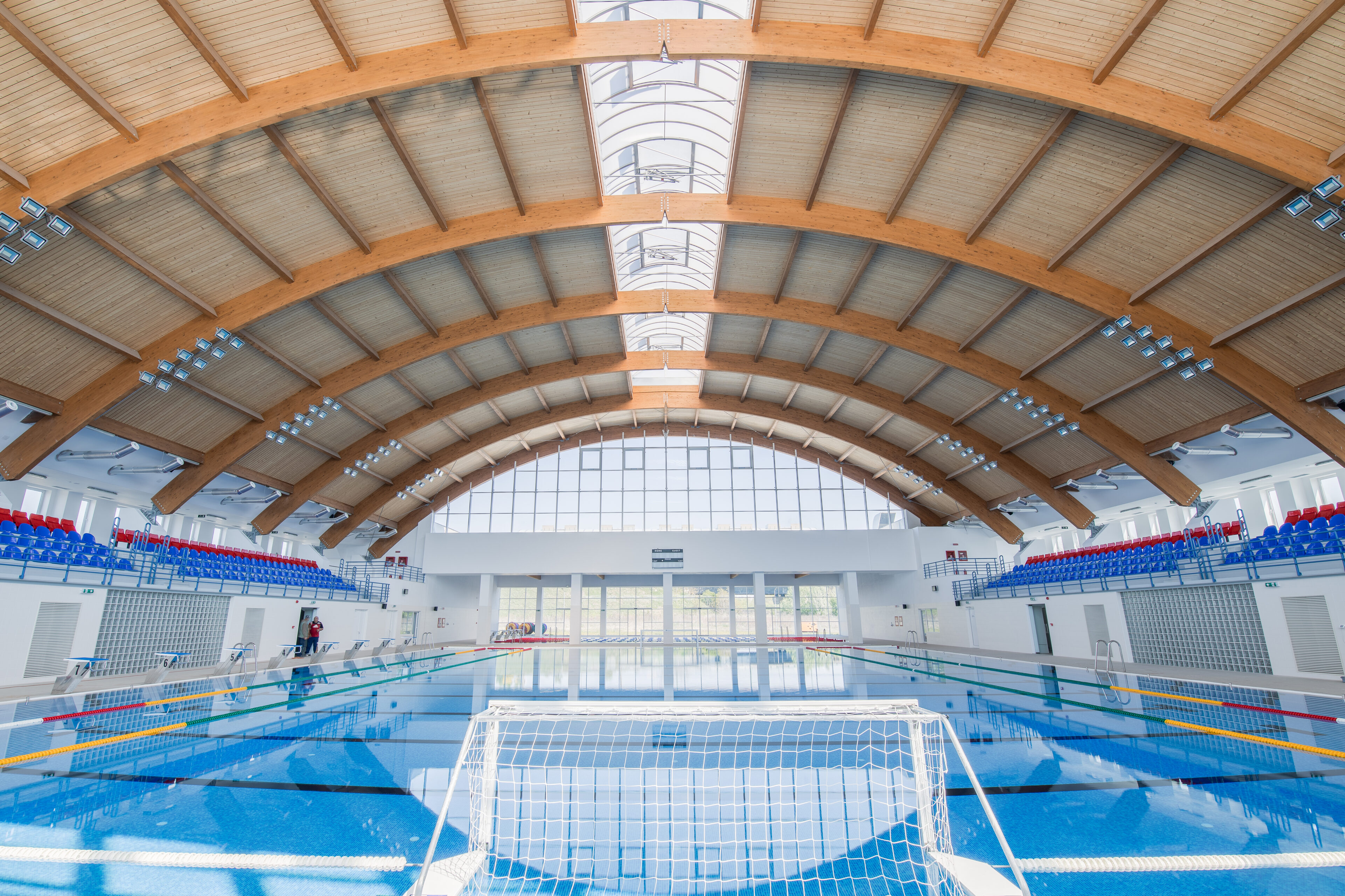 Pentru acest proiect am tratat exclusiv partea de proiectare a suprastructurii de rezistenta din lemn lamelat incleiat. Ansamblul de elemente (grinzi principale/secundare, dispuse in forma de U) este din lemn lamelat incleiat, clasa de rezistenta GL24h si GL28h.
